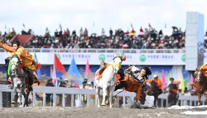 60年來,在黨中央親切關懷、西藏自治區黨委堅強領導及對口支援省市和企業無私援助下,那曲各項事業取得全方位進步與歷史性成就。開幕式文藝演出以“馬”文化為核心,分三大篇章展開,四川、青海等地馬術表演隊與本地隊伍共展精湛技藝;千人共舞《禮贊甲子》、器樂合奏《風從浙江來·樂在那曲揚》等節目,生動呈現西藏自治區成立60年輝煌成就與對口支援成果。